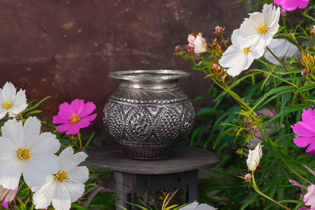 A silver-plated Kalash with Flowing Coins is a stunning symbol of prosperity, abundance, and divine...