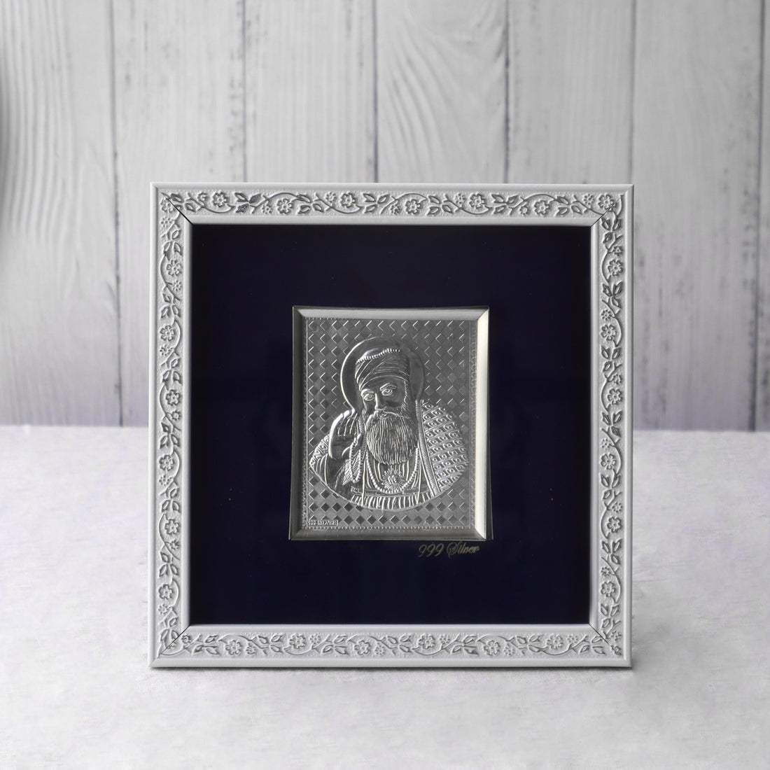 A Silver Guru Nanak Ji Frame is a beautifully crafted devotional piece featuring an image...