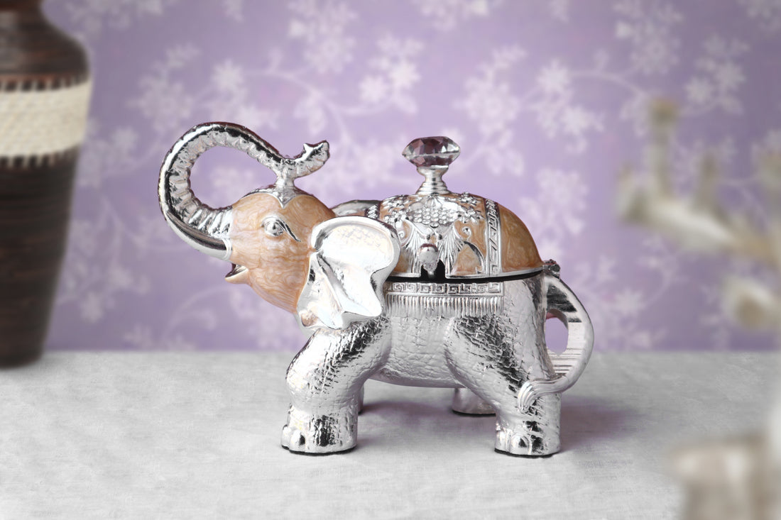 A silver-plated Hathi pair is a beautifully crafted set of two elephants, symbolizing wisdom, prosperity,...