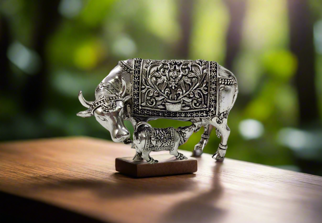 Brass Kamdhenu Cow with Calf Symbol of abundance, purity, and prosperity, this exquisitely crafted Brass...