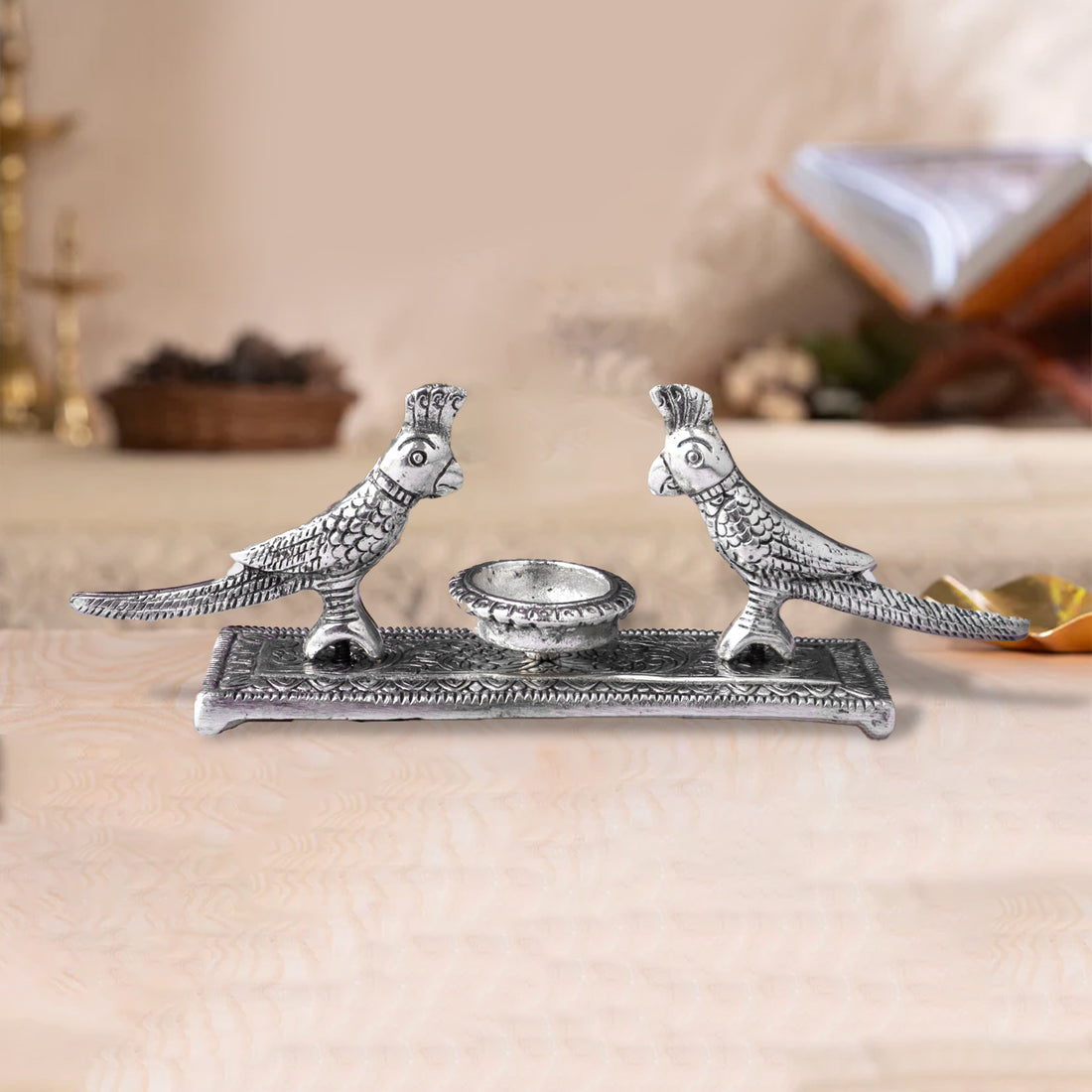 A Silver Peacock Diya is an intricately designed oil lamp (diya) featuring a beautifully crafted...