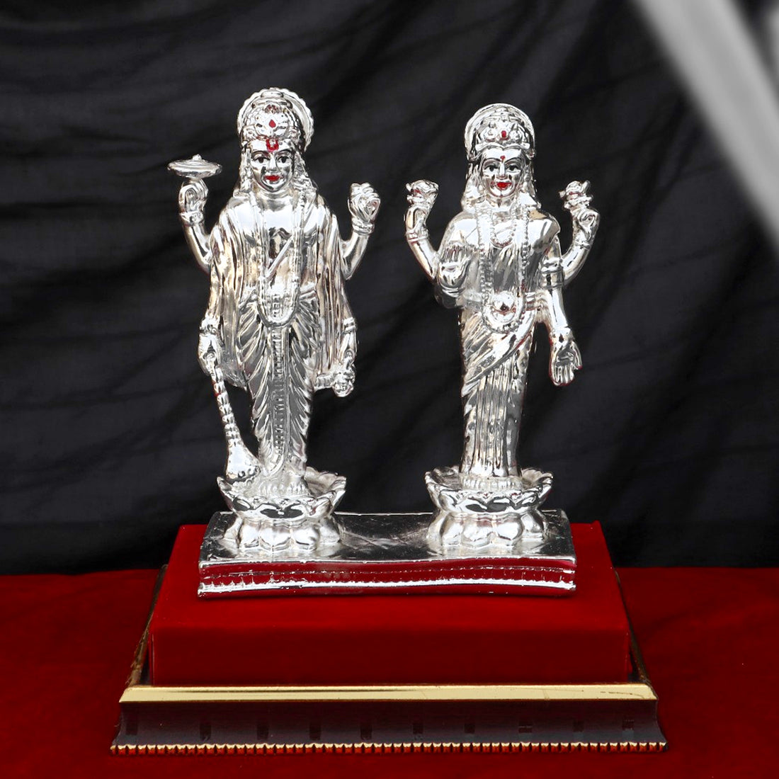 Our Silver-Plated Resin Vishnu Laxmi Ji idols capture the divine union of Lord Vishnu and...