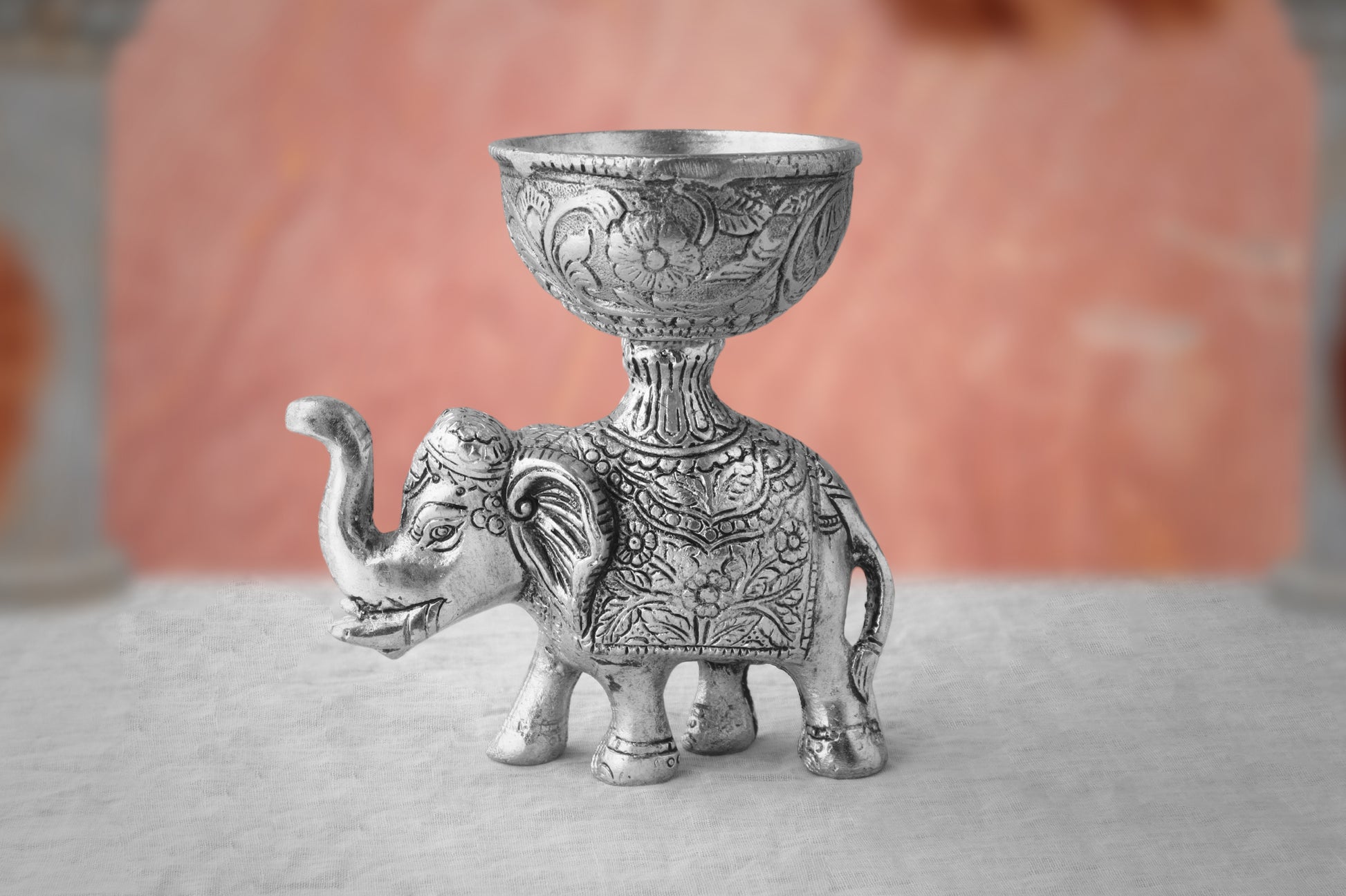 Our Dry Fruit Elephant is a stunning handcrafted masterpiece that serves as both a luxurious decor item and a functional dry fruit holder.