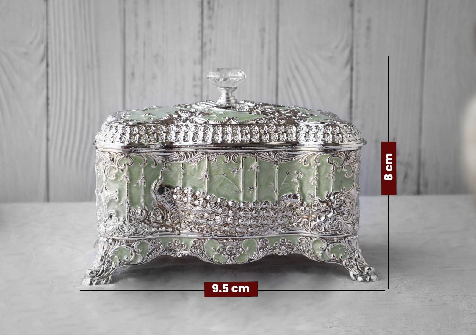 We craft exquisite silver and German silver treasures, merging timeless tradition with contemporary artistry. Our Enamel Jewelry Box is a perfect example of this craftsmanship—designed to store your precious jewels while adding a touch of regal charm to your collection.