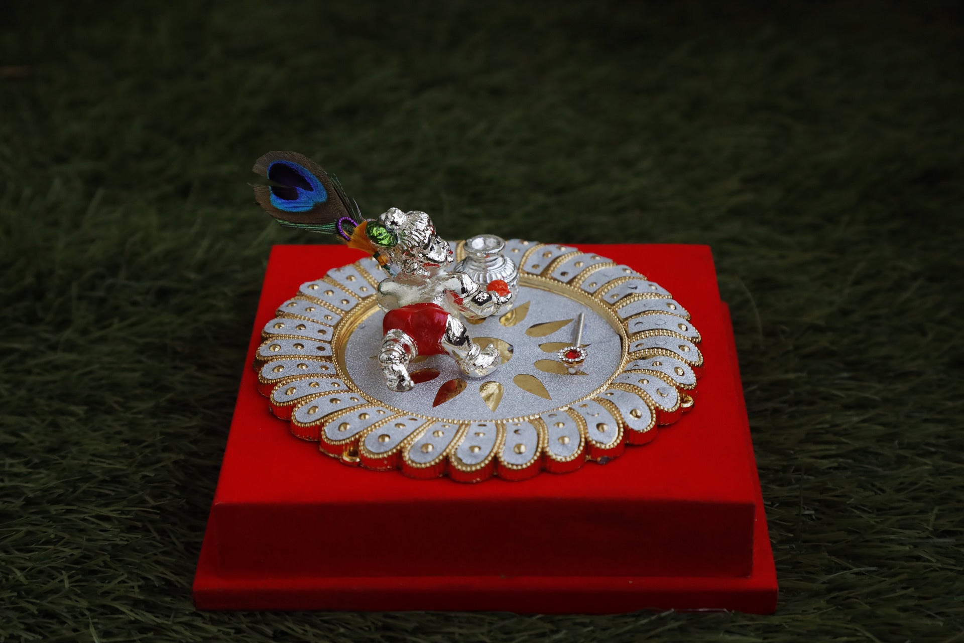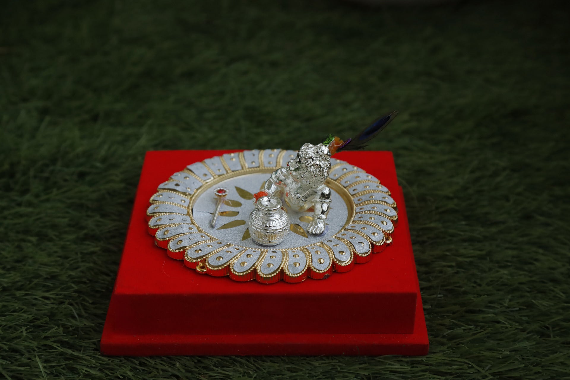 Our Silver-Plated Resin Ladoo Gopal collection features the playful and charming image of Lord Krishna in his beloved childhood form. Crafted with precision, each Ladoo Gopal idol is made from high-quality resin and elegantly plated with fine silver, giving it a radiant and divine finish. The meticulous details, from his innocent smile to the symbolic butter in his hand, bring out the purity and joy associated with Lord Krishna’s early life. These idols make a perfect addition to your worship space or home decor, embodying divine blessings and spiritual beauty. Ideal for gifting or as a token of devotion, our silver-plated resin Ladoo Gopal pieces radiate both grace and charm.