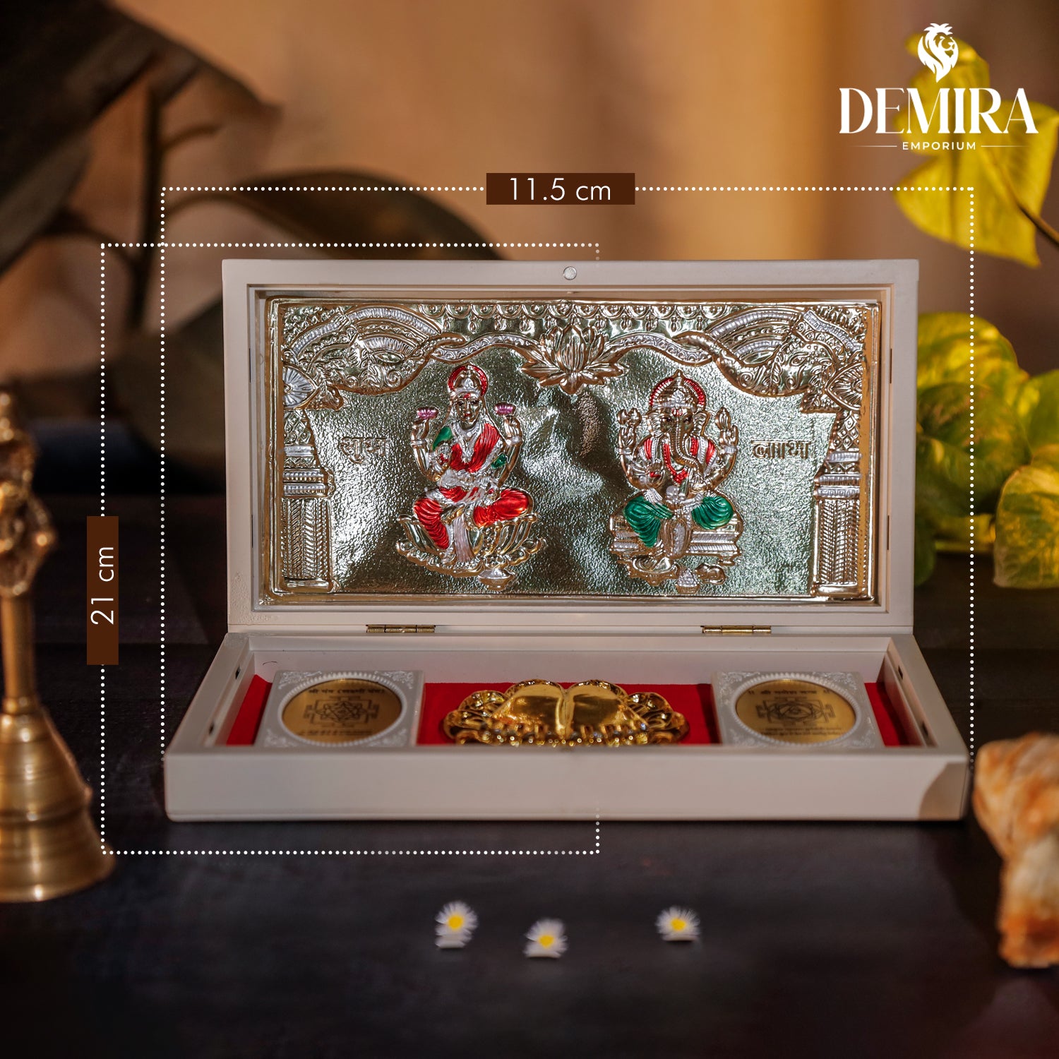 Silver-Plated Charan Paduka is a sacred representation of divine footsteps, symbolizing reverence and devotion. Crafted with intricate detailing, these miniature footprints are designed to honor deities, saints, or gurus, often placed in pooja rooms, temples, or spiritual altars