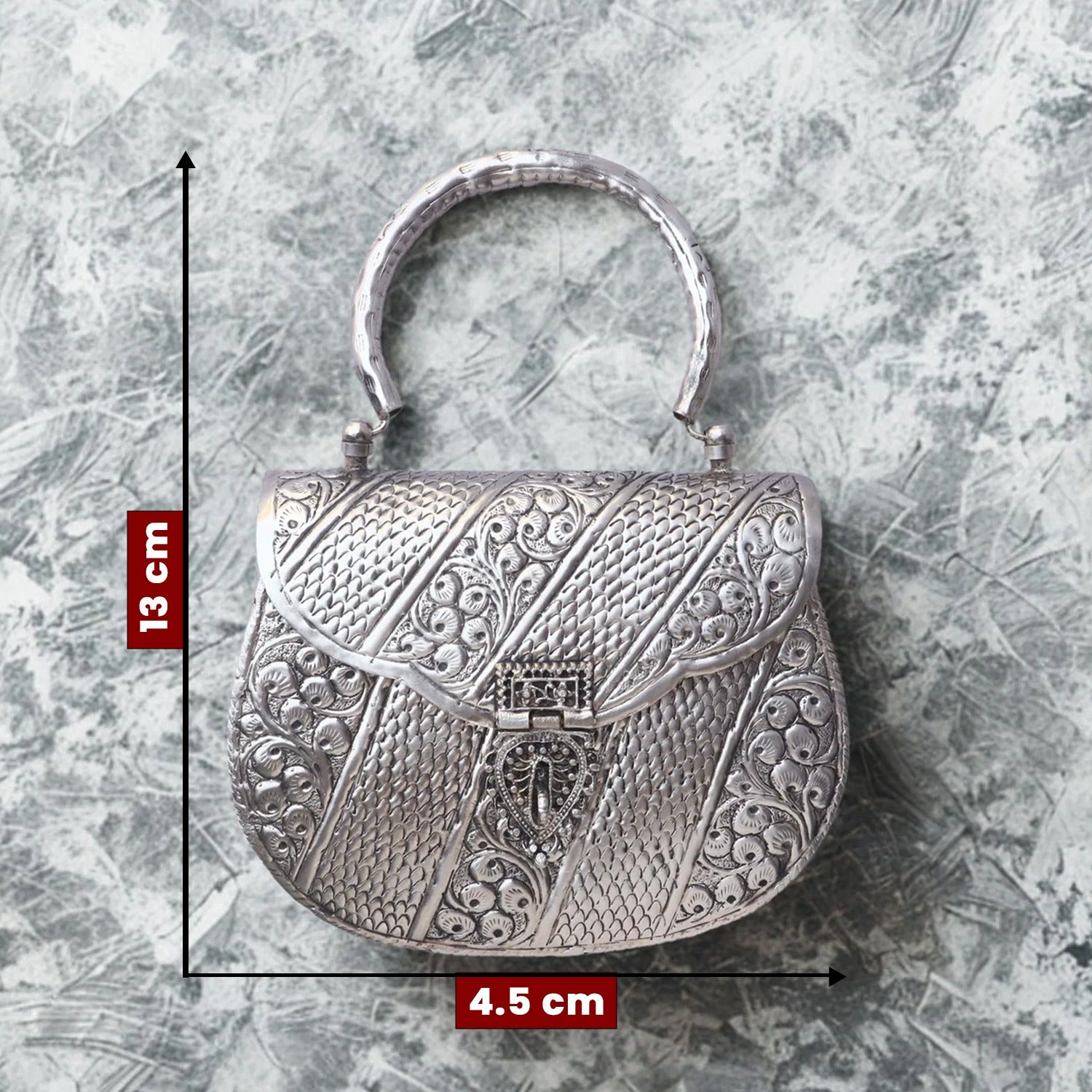 Our Silver Purse is a perfect example of timeless artistry, designed to add a touch of royalty and grace to your ensemble. Whether carried as a statement piece or gifted to someone special, it exudes grace and timeless elegance.