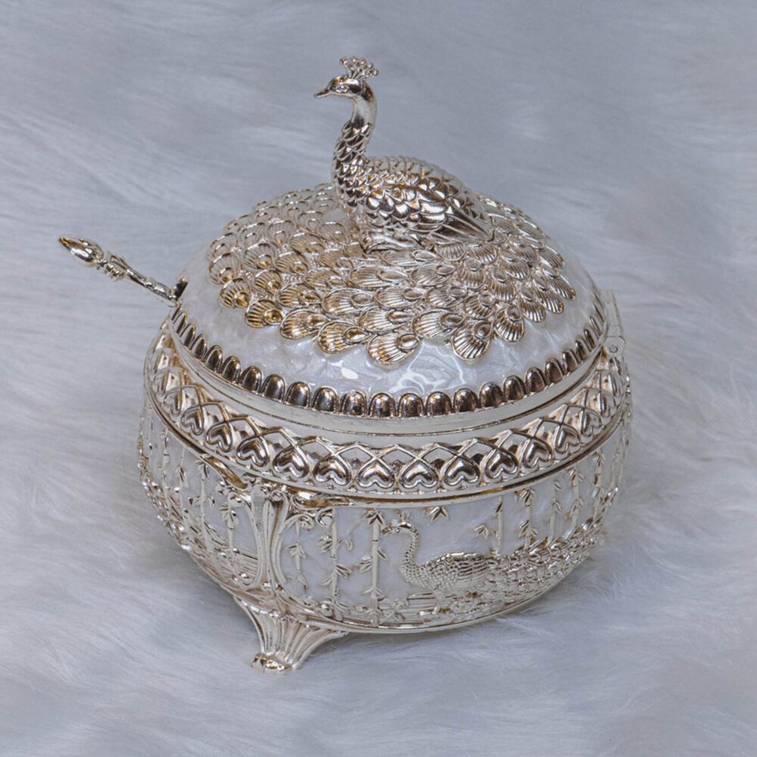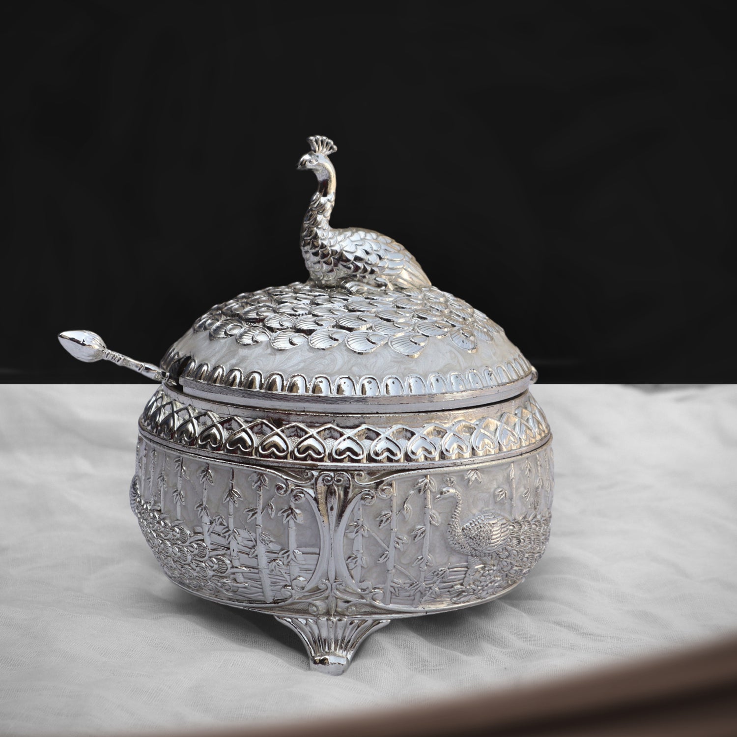 A Silver Supari Box is a finely crafted container designed to store supari (betel nuts) and other small ceremonial items. It combines traditional artistry with practical functionality, making it a cherished piece for both everyday use and special occasions.